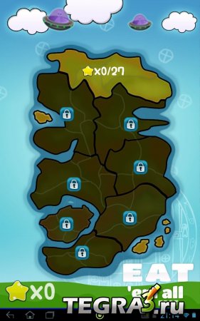 Eat em All FULL - На нашу Землю напали пришельцы . Они отложили яйца повсюду и улетели. Детишки начали вылупляться и напали на деревню. И так замечательная головоломка, в которой вам необходимо определить путь, чтобы истребить все шарики и по пути собрать звезды. Сложность заключается в том, что по одной линии нельзя проводить 2 раза. У вас в помощи будут различные бонусы, в том числе граната, молнии, мосты и огонь. В игре 8 различных зон и 72 захватывающих уровня.